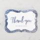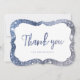 Arrière - plan de parties scintillant en argent scintillant et bleu avec script "merci" au centre, élégant et élégant, cartes de remerciement pour mariage, fête d'anniversaire, douche nuptiale, baby shower, ou autres occasions spéciales.