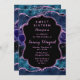 Cette élégante et glamour invitation d'anniversaire sweet sixteen présente un arrière - plan en marbre marbré bleu marine et bleu turquoise avec des accents de parties scintillant faux violet. Le texte combine écriture manuscrite et polices sans serif modernes pour un look élégant et sophistiqué. Les paillettes et la texture en mauvais état créent un mélange parfait de chic et de grunge.