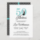 Une invitation photo chic, élégante, 50ème anniversaire que vous pouvez personnaliser et envoyer pour votre fête du cinquantième anniversaire. Les mots "50 and Fabulous" en parties scintillant noir et bleu turquoise sont définis à l'aide de la typographie moderne. Il y a un motif en diamant géométrique noir et blanc au dos de la carte avec des rubans en parties scintillant bleue. Si vous avez besoin d'aide ou de produits correspondants, veuillez nous contacter par l'intermédiaire de notre magasin. Nous sommes heureux de vous aider à faire de votre 50e anniversaire un événement fabuleux.