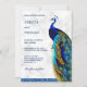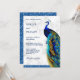 Éblouissez vos invités avec cette élégante invitation de mariage à thème paon avec un beau paon avec des plumes vives et une typographie moderne sur un arrière - plan en marbre blanc. Ajoutez simplement les détails de votre événement sur ce modèle facile à utiliser pour en faire une invitation unique. Retournez la carte pour révéler une fausse texture de parties scintillant bleue au dos de la carte.