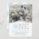 Ce design de premier anniversaire sur le thème du flocon de neige et de l'hiver présente un délicat flocon de neige bleu dans le "o" de "one" accentué par la parties scintillant argentée et l'espace pour une photo! Cliquez sur le bouton customiser pour plus de flexibilité en ajoutant votre texte! Des variantes de ce design, des couleurs supplémentaires, ainsi que des produits de coordination sont disponibles dans notre boutique, zazzle.com/doodlelulu*. Contactez-nous si vous avez besoin que ce design s'applique à un produit spécifique pour créer votre propre article de correspondance unique! Merci tellement pour voir un DoodleLulu par 2 mois de bogues design!