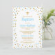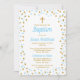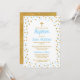 Célébrez le baptême de votre enfant avec cette belle invitation à confettis de parties scintillant bleue et or. On peut également l'utiliser pour une cérémonie de dédicace.
