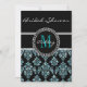 Invitations de douches nuptiales avec motif de Damas noir avec effet photo de Parties scintillant bleu Turquoise IMPRIMÉ. Personnalisez avec votre nom et votre monogramme initial. Conception par Elke Clarke ©. Graphiques sous licence pour utilisation. Une grande invitation à la douche pour la mariée.