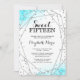Le bleu turquoise moderne et l'argent sont une combinaison de couleurs tendance qui font de cette invitation géométrique Quinceañera le choix parfait! Cet invitation sucré unique de 15 ans est élégant pour une fête de coing formelle. Les dessins sont des illustrations et des graphiques imprimés à plat - PAS DE PARTIES SCINTILLANT RÉELLE OU DE FOIL.
