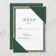 Elégante parties scintillant brillante en vert foncé, or et argent brillant Holographique Mariage RSVP invitations sont parfaites pour toute cérémonie élégante et sophistiquée. Ce design minimaliste exquis et éblouissant est idéal pour la jeune fille branchée et élégante ou pour n'importe qui. Customisez ce design avec votre propre message et des informations personnalisées. Tous les dessins sont imprimés.