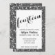 Une belle parties scintillant d'or 14e anniversaire invitation à la fête avec le même design de parties scintillant or sur le dos de cette invitation de 14 ans. Veuillez noter qu'il n'y a pas de parties scintillant réelle sur l'invitation du treizième anniversaire, mais un effet design. Vous pourrez facilement personnaliser cette magnifique invitation de 14 ans avec les détails de la fête.