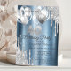 Invitation Parties scintillant d'argent Ballons Bleus Métalli