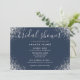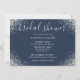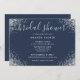 Elégante invitation à la douche nuptiale bleu marine et argent avec une police de caractères de script moderne et confetti argent. Éléments correspondants disponibles.