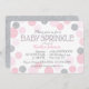 Parties scintillant en argent et pois-pois rose parsemé moderne design de carte d'invitation pour bébé saupoudré.