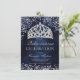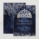 Un confetti de parties scintillant argent chic et luxueux sur un ciment bleu marine d'aquarelle foncé avec élégante typographie calligraphie Quinceañera invitation anniversaire, avec une main dessinée luxueuse couronne de princesse tiara rose parties scintillant or.