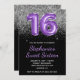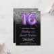 Créez votre propre 16e anniversaire moderne avec un faux art numérique de numéro de ballon en feuille violet. Envoyez un message au créateur si vous avez besoin d'un invitation pour un autre âge créé. L'arrière - plan de glamour girly présente des parties scintillant décoratives en faux argent brillant sur une couleur noire solide. Les effets de texte brillant, parties scintillant et feuillu de luxe sont créés avec des éléments artistiques qui s'impriment comme une photo. Vous pouvez customiser la calligraphie fantaisiste et moderne tous les styles de police et de couleur casquette.