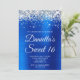 Créez votre propre invitation à célébrer le 16e anniversaire pour votre fille. Les graphiques décoratifs en parties scintillant argent brillant forment une bordure supérieure. L'art numérique arrière - plan présente une feuille de métal brossé à l'ombre bleu roi cobalt brillant. Customisez la couleur de texte ou les styles de police blancs de l'invitation. Le texte "Sweet 16" est également personnalisable. Les scintillants de luxe, la parties scintillant et la feuille seront créés avec des éléments artistiques qui s'impriment comme une photo.