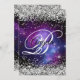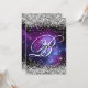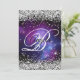 Une élégante invitation monogrammed 50e anniversaire 5x7 pour elle. Parties scintillant argent Faux avec étincelles contre une photo céleste noire, violette et bleue. On peut customiser le monogramme de calligraphie noir et blanc au centre. Tous les éléments argentés brillants de ce design moderne sont des graphismes numériques. Vous pouvez transférer la conception monogrammée sur le devant à un cadeau correspondant de petite ou moyenne taille.