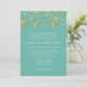 REMARQUE : Il s'agit d'une invitation à plat, il n'y a pas de parties scintillant ni de feuille métallique utilisée. Les effets sont produits graphiquement. DESIGN COLLECTION : Fête élégante, pétillante, amusante dans les oeuvres? Ce faire-part de mariage confetti pois de taille aléatoire informe vos invités qu'une fête se déroule ! De magnifiques scintillants dorés et luxueux plissent dans des motifs aléatoires aux étoiles scintillantes. Parfait pour un large éventail de styles de cérémonie, de la cravate noire formelle au pays rustique, en plein air sous les lumières scintillantes. Vous pouvez customiser ceci pour n'importe quel type de partie en modifiant les champs de modèle faciles à utiliser. Couleurs : piscine d'eau de mer, bleu turquoise moyen et or