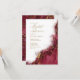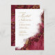 Un arrière - plan abstrait qui évoque le marbre dans les tons bordeaux, veiné d'or brillant, est la toile de fond de l'élégant texte de script et de la conception moderne dans les pièces de cette belle suite mariage. L'invitation présentée ici comprend le texte de script courant facultatif ci-dessus de "Fête des mariées" et un modèle pour ajouter vos détails d'événement pertinents. Recherchez ID644 pour voir toutes les pièces de coordination de cet ensemble.