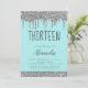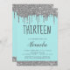 Argent et Turquoise Aqua Robin's Egg Blue Sparkly Dripping Parties scintillant Girl devient un ado 13ème Treizième (Treize) Invitation fête d'anniversaire. C'est le parfait enfant 13ème - 13ème anniversaire de treize filles Invitation pour une Parties scintillant moderne étincelante Fille étincelante fête d'anniversaire. Veuillez contacter le concepteur pour les articles customisés correspondants.