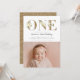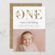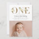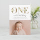 Invitations de premier anniversaire élégantes et chic, avec d'élégantes lettres de parties scintillant en faux or aux accents floraux d'aquarelle en ivoire. Personnalisez-vous en ajoutant les détails de votre fête et la photo en utilisant les champs de modèle fournis. L'envers des invitations comporte un arrière - plan de texture de parties scintillant en faux or correspondant. N'oubliez pas de jeter un oeil aux différents types de papier et aux formes découpées pour une invitation supplémentaire !