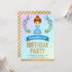 Éblouissez vos invités avec cette invitation à la fête d'anniversaire à thème princesse mignonne avec une adorable petite princesse et jolie couronne florale bleue avec typographie moderne sur un arrière - plan pastel dégradé arc-en-ciel. Ajoutez simplement les détails de votre événement sur ce modèle facile à utiliser pour en faire une invitation unique. Retournez la carte pour révéler un faux motif de bandes de parties scintillant d'or au dos de la carte.