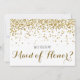 Pour que la mariée soit qui aime l'or, la parties scintillant et le bling! Une façon vraiment amusante de demander à vos filles très préférées de faire partie de votre fête de mariée (et de votre grand jour!) avec faux (imprimé plat) confettis de parties scintillant d'or. Lit "Serez-vous ma servante d'honneur ?" sur le devant avec "Ça signifierait tellement si vous disiez oui !" sur le dos. Customisez avec les noms et la date du mariage pour faire de votre demande une sorte. Matching Maid of Honor, Matron of Honor, Flower Girl, Bridesmaid et Jr. Bridesmaid Cartes et plus encore disponibles. ©2015 Mariages*n*Whimsy