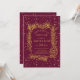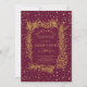 Cadre en pin doré avec cone confetti burgundy hiver Noël mariage dîner de répétition Invitation. Un beau design mariage qui comprend un cadre en pin doré avec cône et aiguilles et confettis d'or bordé d'arrière - plan bordeaux. Le dos est recouvert d'un confetti d'or.