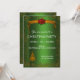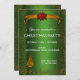 Une élégante invitation à la fête de Noël en or et vert avec une bannière dorée avec poinsettia rouge saisonnière et un arbre de Noël en or sur un arrière - plan vert, le tout encadré de parties scintillant d'or. Au verso de la carte se trouve le bouquet poinsettia rouge. (Note du concepteur : veuillez noter que cette invitation peut être complètement customisée pour n'importe quel type de fête de Noël que vous souhaitez, y compris les invitations de fête d'anniversaire de Noël, les invitations de mariage de Noël, et plus).
