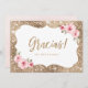 Faux rose or brillant parties scintillant arrière - plan et rose vif floral avec script "gracias" au centre, élégant et élégant, grande carte de remerciement pour mariage, fête d'anniversaire, douche nuptiale, ou baby shower.