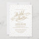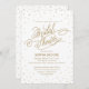 Petit confetti étoiles scintille et scintille dans un effet de parties scintillant dorée autour du bord de cette simple et douce invitation à la nuptiale blanche et or, avec un script d'effet parties scintillant or lisant, "Fête des mariées". Parfait pour une douche chic et soignée ! Oeuvre originale de Colleen Michele. Veuillez noter qu'il n'y a pas de véritable effet de parties scintillant or ou de feuille d'or sur les étoiles et le script ; aucune parties scintillant, feuille d'or ou encre métallique ne sera utilisée dans cette invitation.