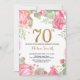 Floral 70th Birthday Invitation for Women. Aquarelle Fleur botanique florale. Parties scintillant d'or. Pignons Roses Fleurs Florales. Anniversaire adulte.