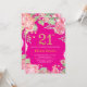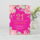 Invitation Florale 21e anniversaire pour les femmes. Aquarelle Fleur botanique florale. Parties scintillant d'or. Arrière - plan rose chaud. Pignons Roses Fleurs Florales. Anniversaire adulte. Pour plus de personnalisation, cliquez sur le bouton "Customiser" et utilisez notre outil de conception pour modifier ce modèle.
