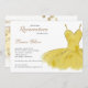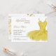 Elégante robe jaune aquarelle avec bordures de parties scintillant dorée avec le côté arrière dans de belles touches de brosse aquarelle et parties scintillant or. Toutes les informations sont personnalisables avec des polices de votre choix et de votre couleur. Profitez de votre personnalisation pour avoir une invitation de vos rêves.