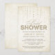 Cette jolie invitation à la douche nuptiale de The Spotted Olive™ présente un joli arrière - plan en or doux avec une image de gemmes scintillantes en streaming depuis le haut et les mots "Fête des mariées" stylisé avec le mot "douche" rempli d'une image de parties scintillant en or. VEUILLEZ NOTER : CETTE CONCEPTION NE COMPORTE QU'UNE IMAGE IMPRIMÉE DE PARTIES SCINTILLANT ; IL N'Y A PAS DE PARTIES SCINTILLANT PHYSIQUE UTILISÉE OU INCLUSE ; IL N'Y A PAS D'EMBELLISSEMENTS. IL S'AGIT D'UNE INVITATION IMPRIMÉE À PLAT.Copyright 2013-Present | L'Olive tacheté™ | Tous droits réservés