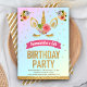 Éblouissez vos invités avec cette mignonne invitation de fête d'anniversaire à thème licorne avec un beau visage de licorne or et de jolies fleurs avec typographie moderne sur un arrière - plan pastel dégradé arc-en-ciel. Ajoutez simplement les détails de votre événement sur ce modèle facile à utiliser pour en faire une invitation unique. Retournez la carte pour révéler un faux motif de bandes de parties scintillant d'or au dos de la carte.