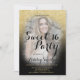 Une douche à parties scintillant moderne, joli faux or sombre avec bloc de couleur noire Sweet 16 anniversaire invitation avec votre photo personnalisée avec motif d'ombre dorée qui s'estompe sur un arrière - plan noir. Parfait pour un Sweet sixteen princesse, parfait pour elle, la fashionista qui aime motif moderne et glam