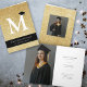 Cette parties scintillant en faux or tendance et élégante jumelée à la carte pliée classique de graduation en noir et blanc présente un monogramme audacieux / "M" initial du nom du diplômé avec une planche de mortier / accent de casquette de graduation. Vous pouvez inclure votre photo préférée du diplômé dans le saignement complet à l'intérieur de la carte et une photo plus petite au dos. Vous pouvez également ajouter d'autres photos, éléments de conception et texte sur n'importe quelle page de cette carte. La lettre monogramme présentée peut être facilement changée en alphabet et personnalisée dans la page de personnalisation du produit. La planche de mortier ou le capuchon de graduation et la simple bande épaisse peuvent être déplacés, retournés à gauche/à droite ou changés à n'importe quelle couleur de votre choix. Illustration de fat*fa*tin. Facile à personnaliser avec votre propre message texte, nom, photo ou image. D'autres styles de police, filtres photo et fonctions d'édition sont disponibles sur la page "modifier la conception". — https://www.zazzle.com/collections/graduation_party_supplies-119447822100562139 — https://www.zazzle.com/collections/personalized_graduation_accessories_custom_gifts-119420215306879748 — https://www.zazzle.com/collections/graduation_announcement_cards-119240297798176351 — www.zazzle.com/collections/graduation_party_invitations-119988321070623801 — www.zazzle.com/collections/graduation_thank_you_cards-119015369615228414 — www.zazzle.com/fat_fa_tin www.zazzle.com/color_therapy www.zazzle.com/fatfatin_blue_knot www.zazzle.com/fatfatin_red_knot www.zazzle.com/fatfatin_mini_me
