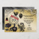 Parties scintillant en or noir glamour et talons noirs et rouges. Cette invitation offre une ambiance subtile et chic.