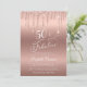 Élégante et chic invitation à la fête du 50e anniversaire avec "50 & Fabulous" écrit en écriture blanche stylisée, un arrière - plan d'or rose, et des gouttes de parties scintillant d'or rose. Vous pouvez personnaliser avec son nom et les détails de la fête.