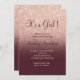 Une parties scintillant d'or fausse rose moderne, originale et simple ombre C'est une invitation baby shower fille sur un arrière - plan de couleur bordeaux entièrement personnalisable