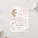 Mon bébé ! Une petite étoile est en route ! Une élégante, adorable et mignonne parties scintillant Rose douce en or étoile nuages oh baby shower invitation avec jolie parties scintillant lune avec une étoile pendante, un amas d'étoiles avec des nuages pastel rose et gris clair aquarelle avec une élégante typographie de police de pinceau script. Une grossesse baby shower sans sexe avec une pointe d'or rose, gris, or et rose,