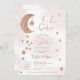 Invitation parties scintillant d'or rose lune étoiles nuages