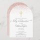 Doté d'une élégante parties scintillant rose en or et d'un simple crucifix en or, cette première invitation chic à la communion sainte peut être personnalisée avec vos informations spéciales d'événement. Conçu par Thisisnotme©