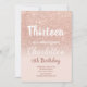 Faux parties scintillant en or rose ombre sur rose vif 13e anniversaire Une invitation moderne à la fête d'anniversaire de treize ans avec invitation à la parties scintillant en or original, moderne et simple faux rose invitation et à la typographie de style manuscrit sur un arrière - plan de couleur rose vif pastel entièrement personnalisable.