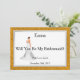 Il s'agit d'une belle carte d'invitation de demoiselle d'honneur de 5" x 7". C'est le mieux pour la mariée, qui aime les couleurs or et le scintillement. C'est une façon vraiment amusante de demander à votre amant ou à votre petite amie de faire partie de votre mariage.