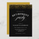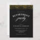 Cette invitation à la retraite offre un design élégant accentué d'élégants textes de script et de confettis de parties scintillant d'or sur un arrière - plan noir.