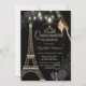 Invitation Parties scintillant d'or Tour Eiffel Roses noirs Q