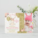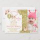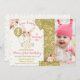 Parties scintillant d'or Un lapin 1er anniversaire Invitation Sweet rose et or, floral un lapin tourne une invitation de premier anniversaire pour une petite fille avec une grande parties scintillant d'or numéro un, quelques arrangements floraux, faux points de parties scintillant d'or et ballon. L'invitation du lapin de première anniversaire de cette fille est une façon douce pour les invités invitations à une fête de premier anniversaire à thème lapin.