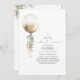 Élégantes invitations à baptiser avec le ballon géant de parties scintillant d'or et la garland de verdure d'eucalyptus