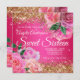 Une élégante invitation à fêter le 16e anniversaire d'une étape monogrammée. Vous pouvez facilement adapter l'année d'âge pour d'autres anniversaires ou événements spéciaux. Faux parties scintillant brillant et brillant rose chaud glam rose contre une jolie rose rose rose sombre image graphique. On peut customiser le chic monogramme de calligraphie florissante classique sur le dos. invitations de fête d'anniversaire sweet sixteen pour votre fille. Tous les éléments de parties scintillant de ce dégradé moderne sont des graphismes numériques qui impriment à plat avec des encres comme s'il s'agissait d'une photo.