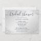 Elégante invitation à la douche nuptiale bleu marine et argent avec une police de caractères de script moderne et confetti argent. Éléments correspondants disponibles.
