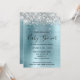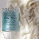 Créez votre propre invitation de baby shower garçon pour la future maman. Customisez la couleur ou les styles de police de l'invitation. Il y a de la place pour plus de texte si nécessaire. L'arrière - plan présente un faux style satin arrière - plan en feuille satinée à l'ombre bleue avec parties scintillant argentée faux brillant. Tout le blanc argenté brillant et brillant dans cet art numérique imprime plat comme une photo.
