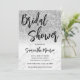Parties scintillant gris argenté et marbre blanc argenté dégradé de couleur pour votre douche nuptiale. La police de script de style "Fête des mariées" de lettrage à la main est une calligraphie contemporaine en noir. Vous pouvez customiser tout le texte de cette conception, y compris la conception de code QR à l'arrière pour un registre en ligne. Le graphique de parties scintillant est un art numérique qui imprime comme une photo sur votre invitation moderne.